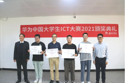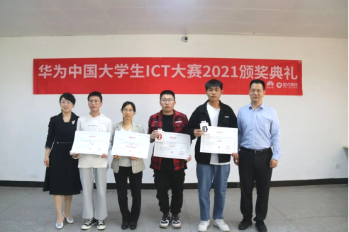成立副院长宣布获奖名单,并开始颁奖,本次华为ICT大赛西安培华学院共有2个团队获奖,其中二等奖1个,三等奖1个。