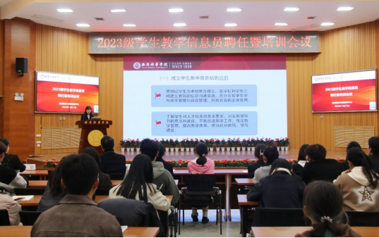 发展规划与质量建设中心主任助理全婧宣读了《关于聘任2023级和调整其他年级学生教学信息员的通知》,详细介绍学校质量保障体系建设情况,强调了学生信息员在质量监控中的重要作用。