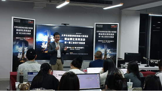 开营仪式上,教务管理中心副主任、实验实训中心主任刘斌发表讲话。他表示,学校举办大学生创新创业训练计划项目和第一届工业设计训练营,旨在切实提高大学生的创新意识、创新精神和创新能力,通过跨专业、跨学院的形式组成团队,向着跨专业合作与跨领域创新方向不断突破,并持续创造价值。最后,他鼓励同学们积极学习技能、认真实践,关注并参与高水平学科竞赛和创新创业活动。