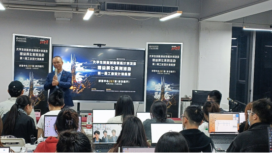 训练营活动教练团代表、摩登犀牛创始人谢岱桦老师强调了本次训练营的价值和对学生专业及职业发展的积极影响,承诺提供高质量的指导,支持学生开展各项训练,并鼓励学生积极响应、提出问题,与教师一起寻找解决方案,教学相长。