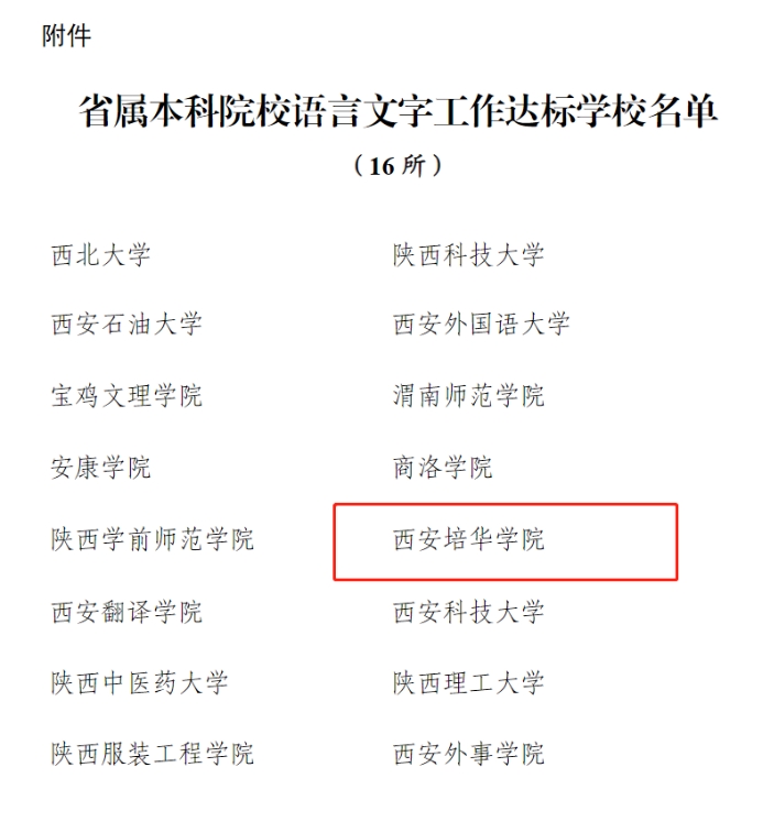 为全面落实习近平总书记关于语言文字工作的重要指示批示精神和国务院办公厅《关于全面加强新时代语言文字工作的意见》,促进学校语言文字工作高质量发展。按照陕西省教育厅《关于普通高等学校语言文字工作规范化达标》验收要求,西安培华学院认真总结、科学评测,对标对表,积极申报省级示范校评估认定,于2024年4月10日获悉顺利通过教育厅的验收评估。