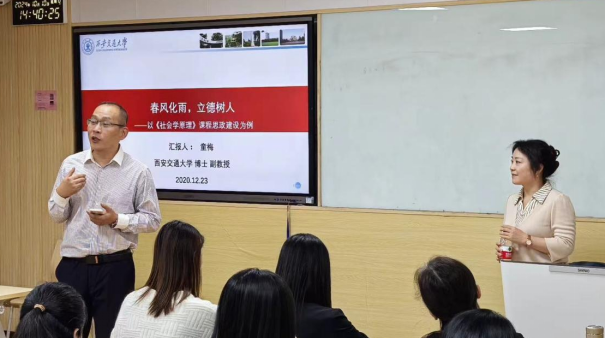会上,童梅副教授以“春风化雨,立德树人—以《社会学原理》课程思政建设为例”为切入点,从课程思政示范项目申报政策解读、申报书撰写及优化提炼等方面分享了课程思政示范项目申报要点。
