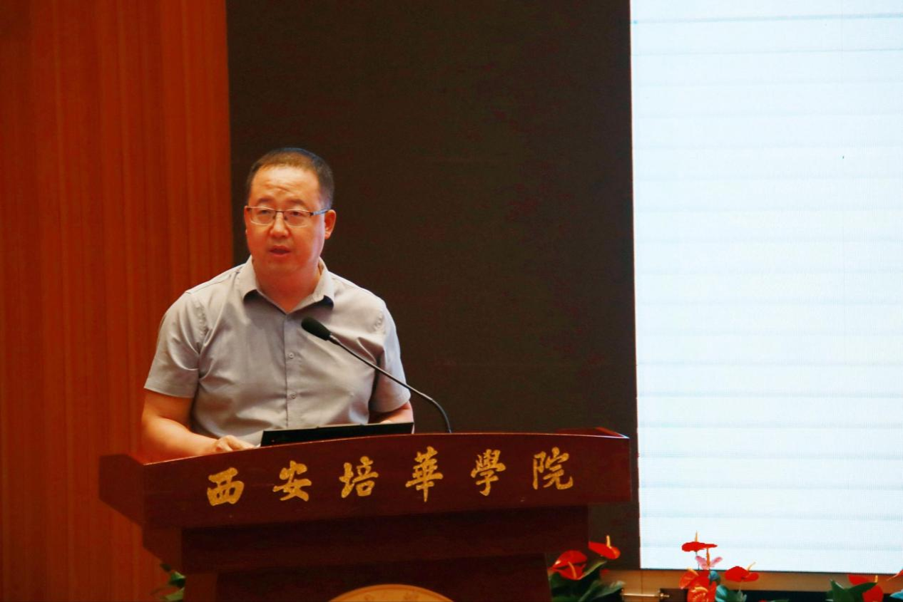 为深入贯彻党的二十届三中全会“改进法治宣传教育”的部署,进一步推动民法典普及宣传,6月4日下午,西安培华学院在图书馆报告厅举办2025年第5个“民法典宣传月”暨“双百”法治宣传报告会。本次活动特邀民法典普法宣讲团授课专家西北大学法学院院长、博士生导师王思锋教授担任主讲人。西安培华学院校长兼党委副书记李映方、党委副书记兼党委宣传部部长蔡亮、理事会办公室主任兼校长办公室主任李健、法学院院长王鸿貌等领导出席活动,法学院教研室主任、教师代表及400名学生代表参加。活动由法学院党总支书记兼行政副院长韩斌主持。