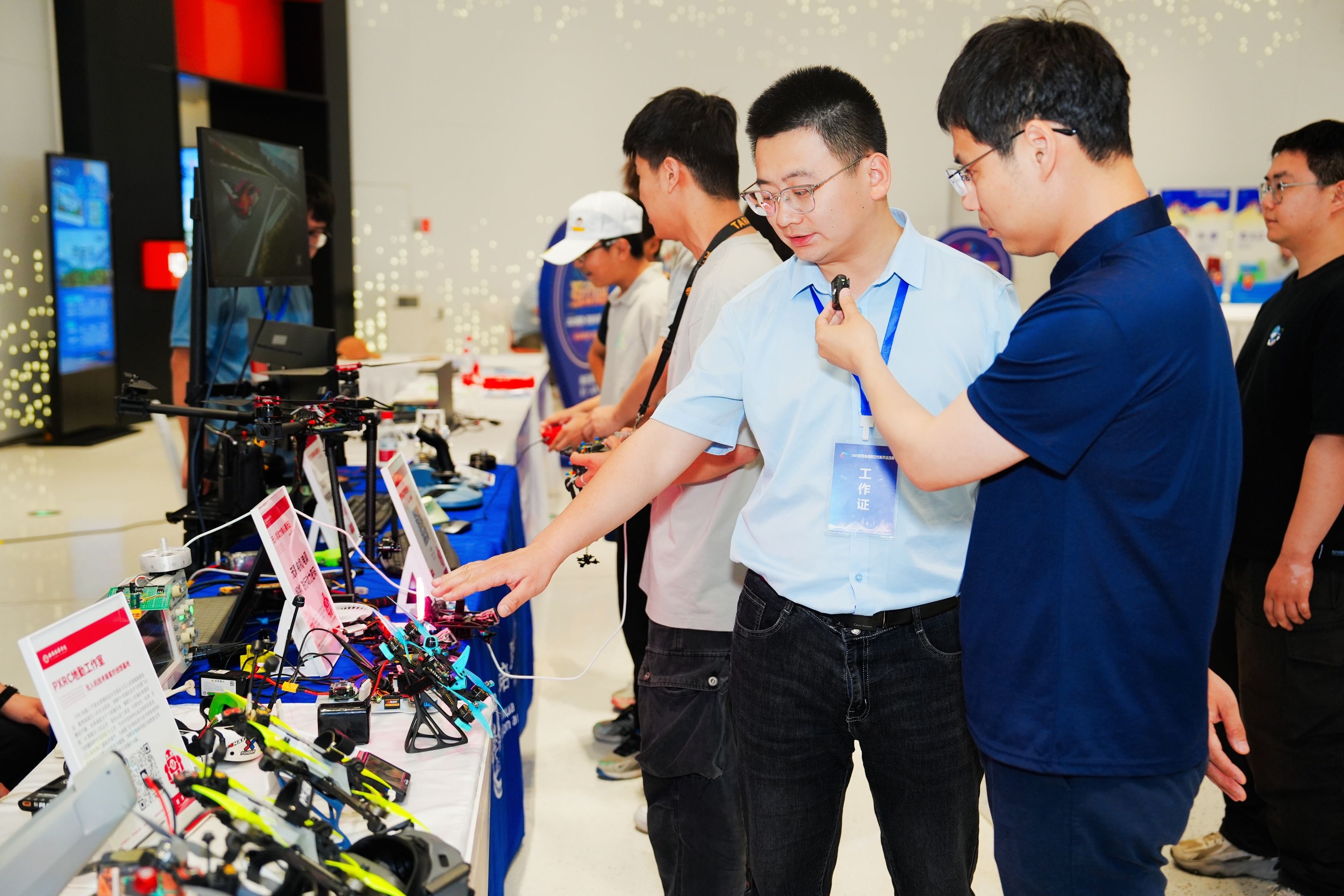 具备高速机动性能与多场景作业能力的穿越机无人机备受瞩目,师生们结合实物展品与展板视频,通过通俗易懂的语言向观众讲解各部件零件的功能与飞行原理;模拟飞行体验区气氛热烈,参观者借助专业操控设备完成虚拟无人机的障碍穿越任务,在趣味互动中感受航空科技的独特魅力。