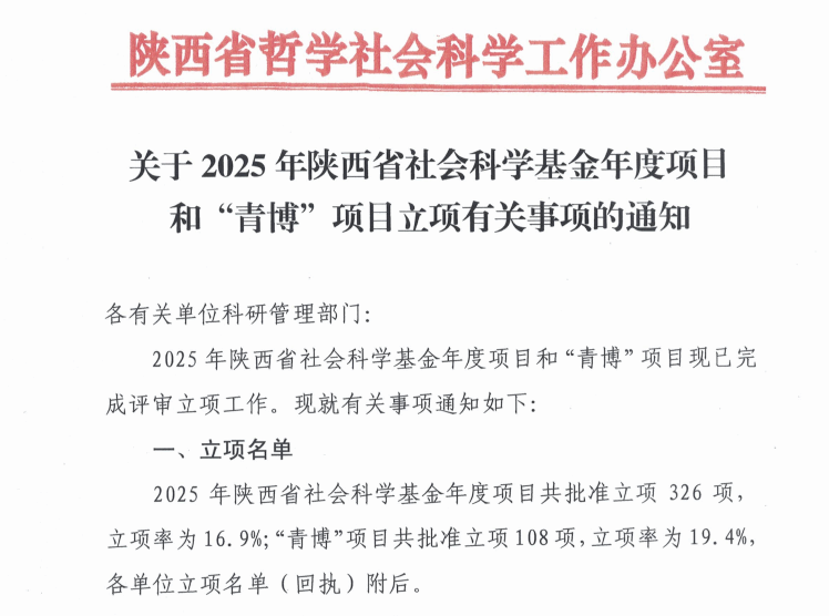 近日,陕西省哲学社会科学工作办公室正式发布《关于2025年陕西省社会科学基金年度项目和“青博”项目立项有关事项的通知》,西安培华学院申报的两项课题成功获批立项。此次立项标志着学校在哲学社会科学领域的研究实力与服务地方文化发展的能力得到了权威认可。
