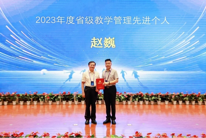 校长李映方为获得“2023年度省级教学管理先进个人”赵巍老师颁奖