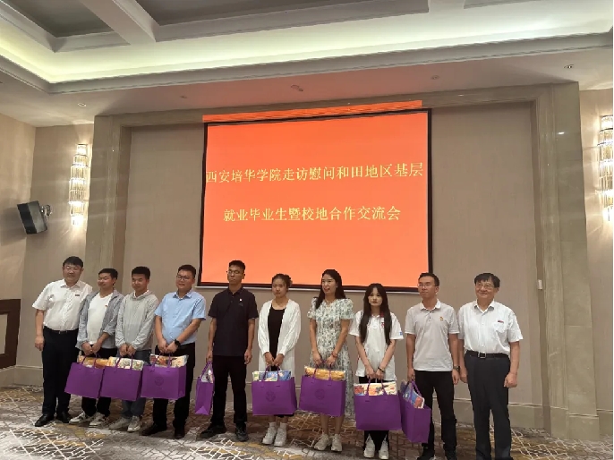 ——走访慰问和田地区毕业生。在和田地区走访慰问期间。慰问团一行所到之处,都与我校毕业生广泛交流,详细了解工作情况、生活状态。和田地委组织部副部长孙松林等领导热情接待李映方校长一行,在基层就业毕业生暨校地合作交流座谈会上,我校21名基层就业毕业生代表一起参会。