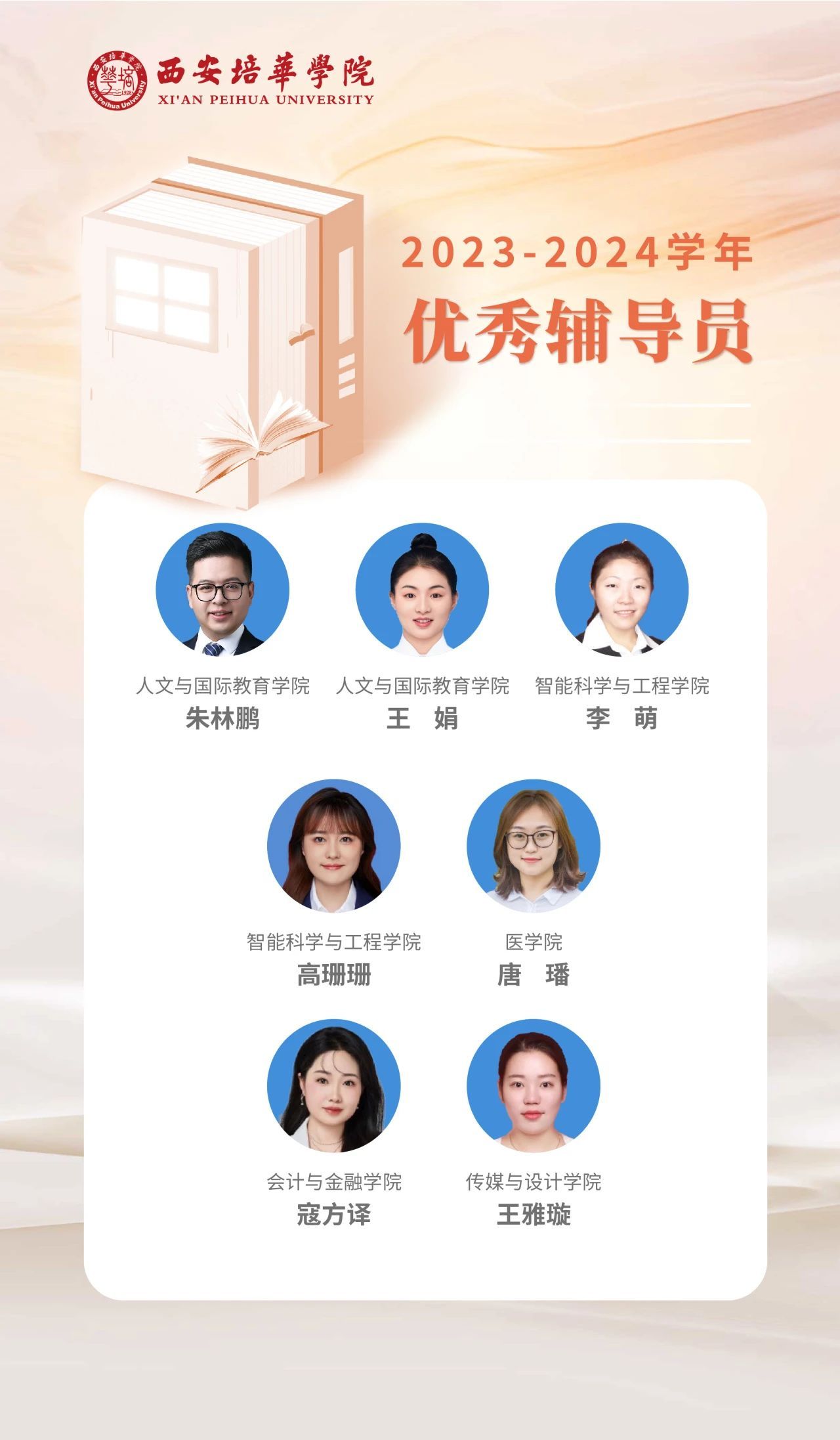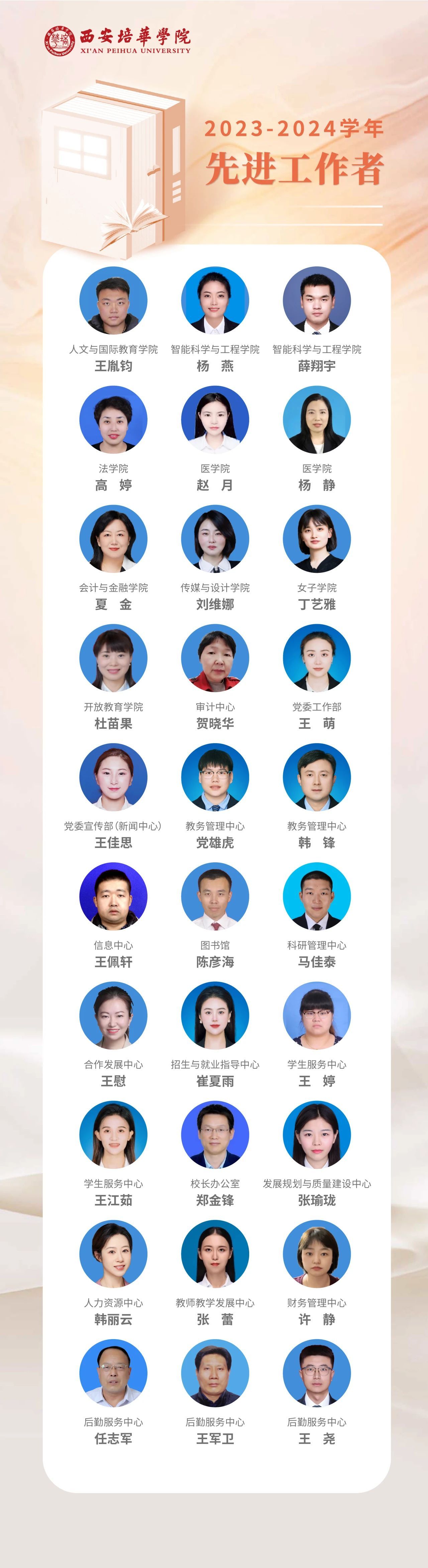 在我国第40个教师节来临之际,为展示培华教职工良好的精神风貌,学校组织开展了师德先进个人、“四有”好老师、优秀教师、优秀辅导员、先进工作者等评选推荐工作。今天的聚光灯照亮,学校7位优秀辅导员和30位先进工作者,让我们一同见证这份荣耀时刻!