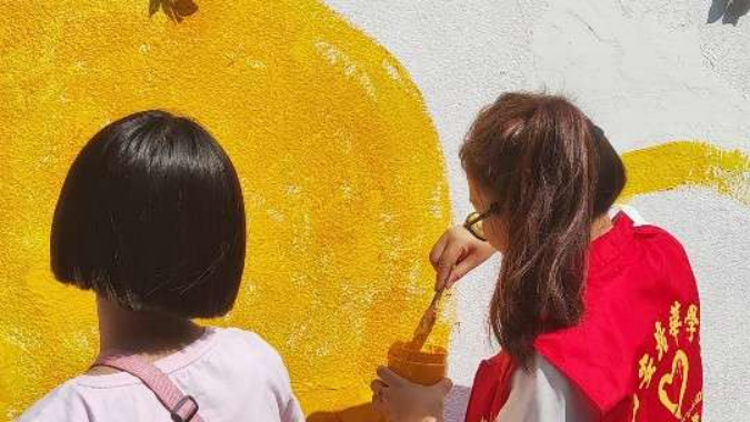 ——代际互动,共绘法治与爱的美好图景。墙绘文化传播健康文明正能量,是推进社区、乡村文化振兴的有效载体。此次活动,不仅是一场跨学科、跨领域的合作盛宴,更是一次代际间心灵与智慧的碰撞。西安培华学院设计专业的学生们以“大手拉小手、助力共成长”为主题,与社区的高中生志愿者、小朋友们携手并肩,共同参与了墙绘的创作过程。在“大手拉小手”的温馨氛围中,他们围坐一起,通过讲故事、画人物的方式,相互学习、相互交流,打造了一种零距离、多趣味的普法宣讲课堂模式,共同为未成年人保护法的宣传贡献着自己的力量。