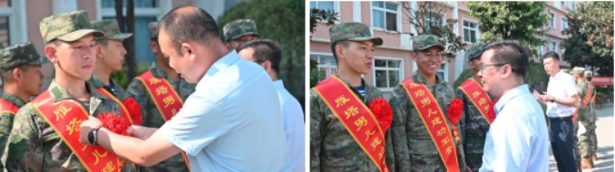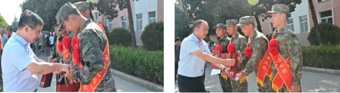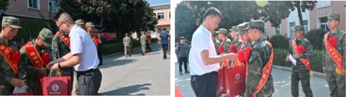 各学院领导为入伍新兵送上入伍纪念品并进行慰问