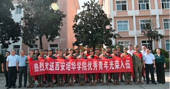 新兵入伍壮雄心,热血青春志报国。为激发广大师生拥军热情,体现我校对参军大学生的关心关怀,我校党委学工部(征兵工作站)于9月18日前往西安市民兵训练基地,慰问欢送我校2024年秋季校内应征入伍20名新兵。党委学工部副部长、征兵工作站站长杨媛,医学院党委书记、行政副院长史立军,人文与国际教育学院党委书记、行政副院长南兵,传媒与设计学院党委书记、行政副院长王飞,会计与金融学院党委书记、行政副院长刘斌,智能科学与工程学院党委副书记王伟平,体育学院团委书记陈新华,法学院团委书记马亮,学生服务中心征兵工作站干事黄珂参加此次送兵仪式,热烈欢送我校新兵入伍。