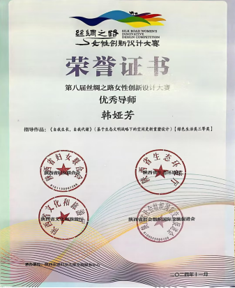 11月4日,第八届丝绸之路女性创新设计大赛颁奖典礼在西安落幕。由传媒与设计学院教师韩娅芳指导,学生罗徐繁、虞皓竹、杨陈宇、胡雨、阿依奔组队申报的“自我生长,自我代谢——基于生态文明战略下的空间更新重塑设计”项目获绿色生活类三等奖,韩娅芳老师获评“优秀导师”,西安培华学院获评“优秀组织奖”。