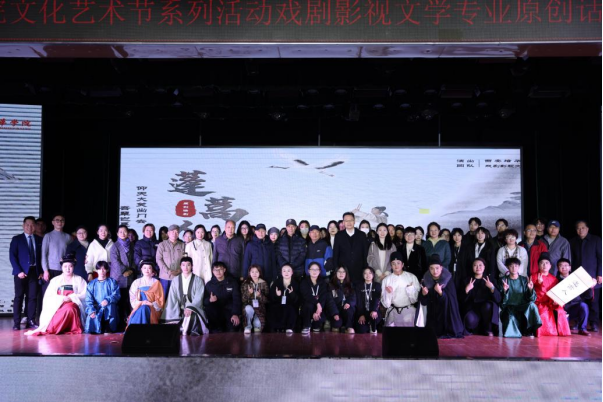 神禾塬上,星光熠熠,11月25日至26日,“神禾戏剧之夜”2024年戏剧影视文学专业汇报演出在大学生活动中心盛大举行。由传媒与设计学院师生团队自编、自导、自演的首部大型话剧《蓬蒿人》精彩上演,为观众带来了一场视听盛宴,同时展现了学院在产教融合改革与跨学科交叉融合实践中的显著成果。陕西省文化和旅游厅艺术处原处长、作家李广顺,西影集团一级导演、东京国际电影节摄影奖金奖获得者马德林,西安培华学院理事长姜波,校长李映方等校内外专家学者莅临现场。戏剧影视文学专业2014届优秀毕业生、西安星跃传媒创始人李畅,2022届优秀毕业生、《蓬蒿人》原创作者丁一格也回到母校参加本次活动。
