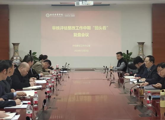 2024年12月3日,学校召开了“审核评估整改工作中期‘回头看’复盘会”,校长李映方、党委书记刘锋、常务副校长胡俊生、副校长姚文静、财务总监薛清、校长助理鲍伟及审核评估整改工作专项工作小组组长和相关职能部门负责人参加了会议。由常务副校长胡俊生主持会议,就审核评估整改工作中期“回头看”工作情况进行了全面总结,进一步学习专家组反馈的意见建议,研讨交流下一步整改工作思路。