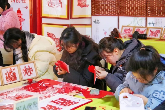 接下来的陕北剪纸体验,更是让学子们亲手感受到了传统文化的魅力与传承。在剪纸师傅的悉心指导下,他们拿起剪刀,小心翼翼地剪出了一个个精美的图案。虽然手法生疏,但那份对传统文化的热爱与尊重,却在他们的每一次剪刻中得到了淋漓尽致地展现。看着自己亲手创作的剪纸作品,同学们的脸上洋溢着满足与自豪的笑容。