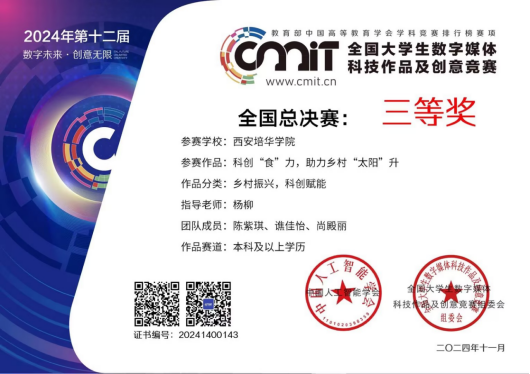 近日,2024年第十二届全国大学生数字媒体科技作品及创意竞赛圆满落幕。培华5支团队凭借卓越的创意能力和实践水平脱颖而出,分别获得国家级三等奖1项、省级二等奖1项、省级三等奖3项。