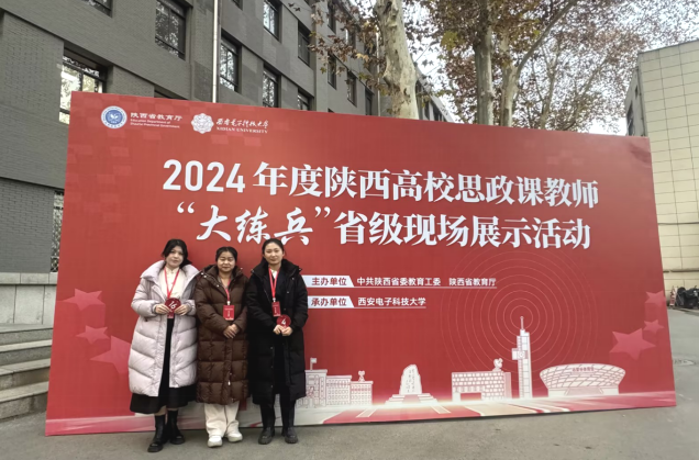 12月25日,由陕西省教工委、陕西省教育厅联合举办的2024年度陕西高校思政课教师“大练兵”省级现场展示活动在西安电子科技大学盛大开幕。西安培华学院马克思主义学院副院长霍艾湘教授、马克思主义原理教研室讲师景安娜、习近平新时代中国特色社会主义思想教研室助教毕静烨子,代表学校参加了此次现场展示活动。