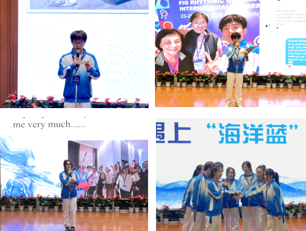 在成立大会上,参与“国际体联艺术体操裁判员培训班”志愿服务工作的8名优秀志愿者用中英文讲述了温暖的志愿服务故事——《当“培华红”遇上“海洋蓝”》,感动了在场无数人,赢得阵阵掌声。同时,现场表彰了优秀志愿者并为国际项目志愿服务队授旗。
