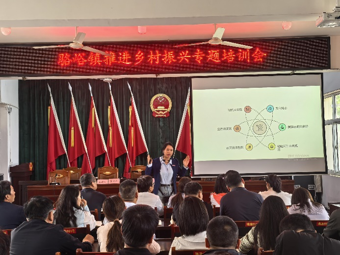 人力资源管理专业带头人、创新创业教研室主任、乡村振兴研究院乡村青年创业发展研究中心主任江凤香教授以《打造周至县骆峪镇特色小镇:文化可感、生态可享、产业可融》为题,为骆峪镇基层干部带去了一场幽默风趣又接地气的乡村振兴主题培训。课程通过生动的案例解析和通俗易懂的语言,系统阐述了特色小镇建设的实施路径,获得骆峪镇政府领导及参训干部的高度评价。