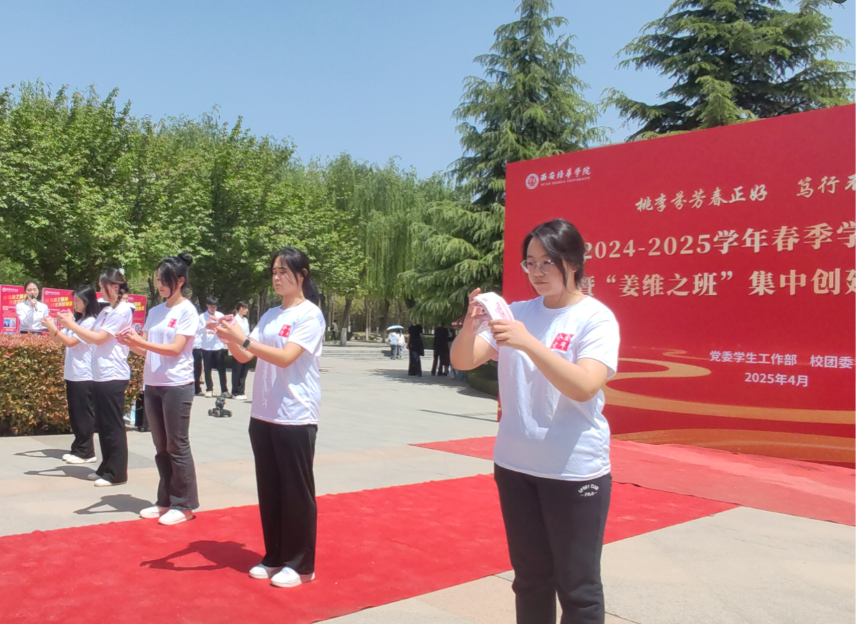 4月17日,西安培华学院在丰园西广场组织开展了别开生面的学风建设暨“姜维之班”集中创建月启动仪式。