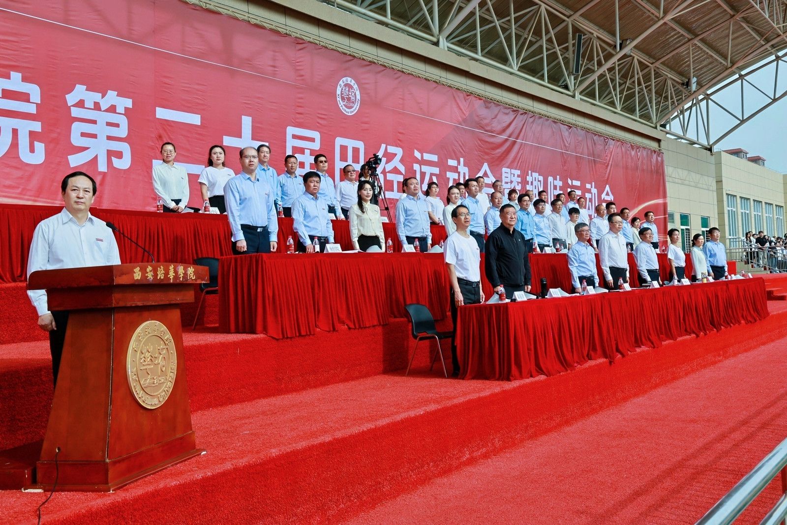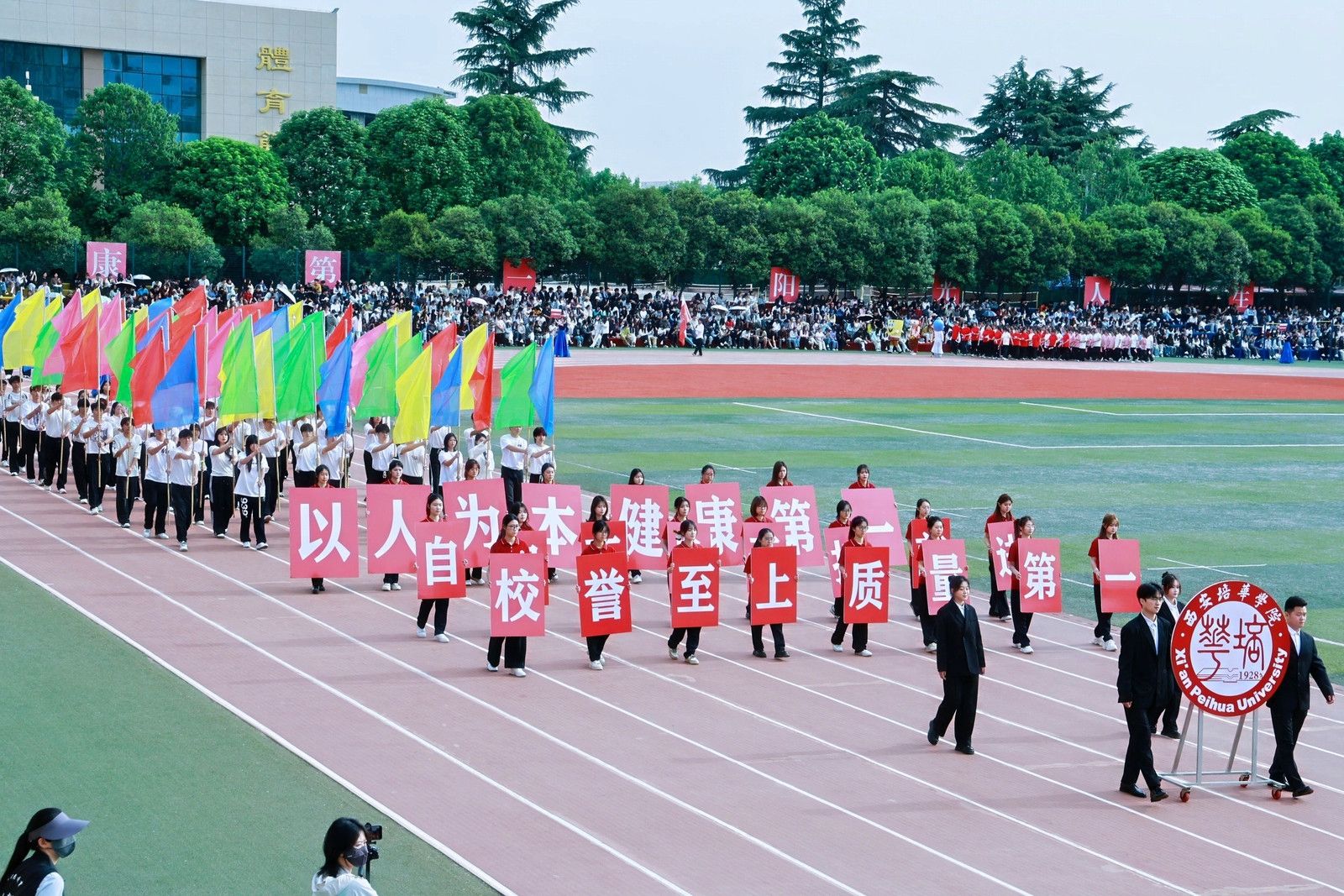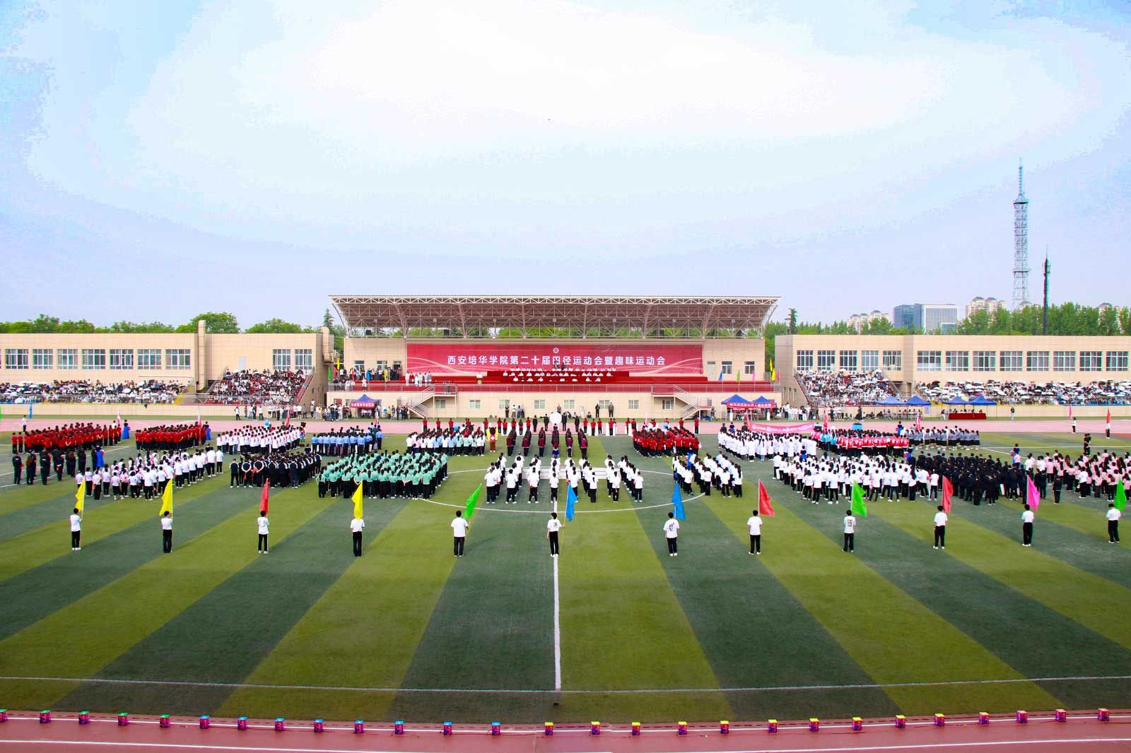 4月24日,西安培华学院第二十届田径暨趣味运动会开幕。理事长姜波,校长李映方,党委书记刘锋,副校长、党委副书记姚文静,财务总监薛清,校长助理秦海锋、鲍伟,全国民办高校体育联盟常务副理事长、秘书长徐国富,校体委全体委员,各院系、行政部门负责人,运动员代表及两万余名师生参加。常务副校长胡俊生主持开幕式。