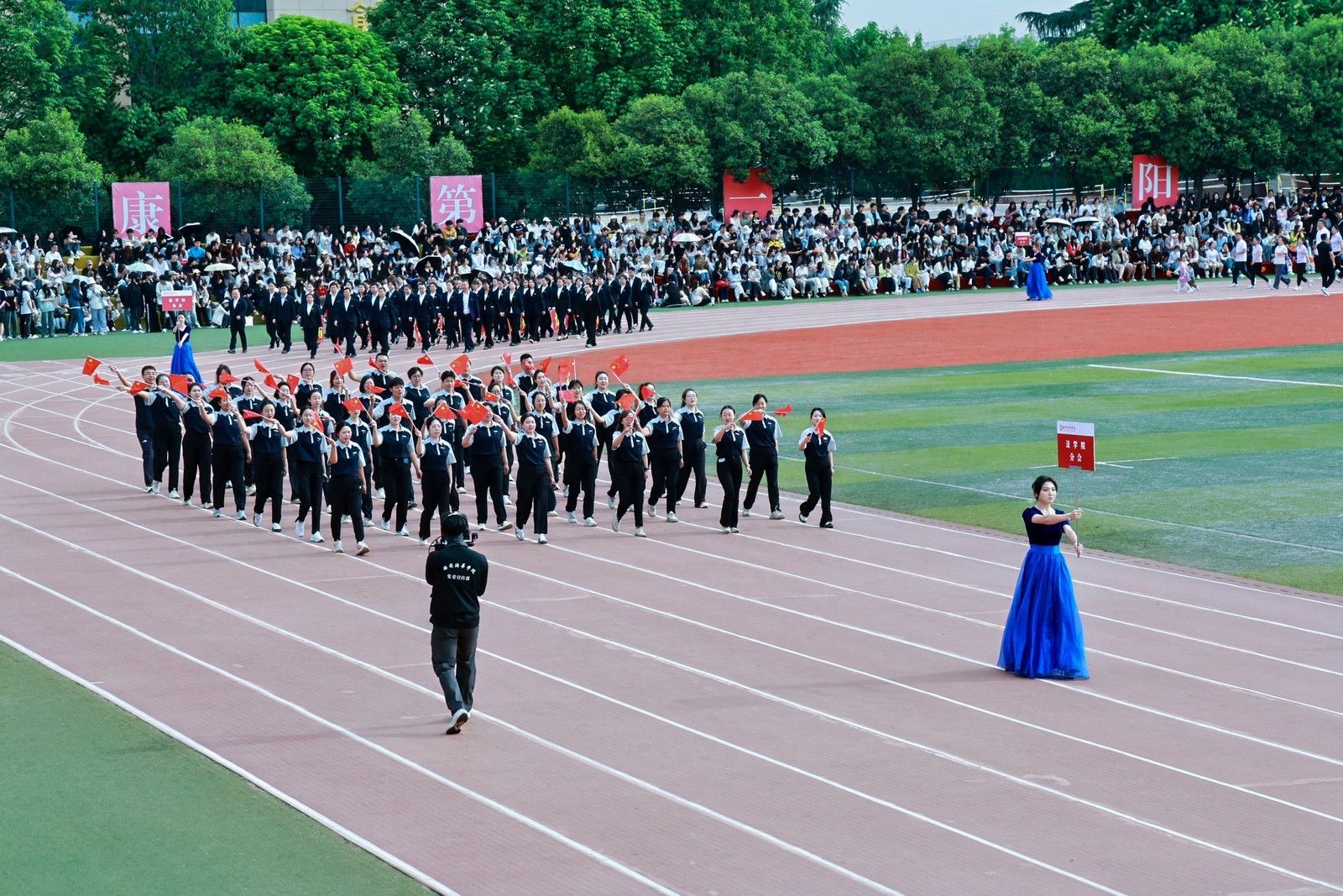 各学院方阵交织出青春长卷,人文与国际教育学院百名奖学金获得者,以书卷化作逐梦羽翼,智能科学与工程学院学子用机械臂叩响未来强音,法学院学子步履铿锵丈量正义维度,医学院学子白袍翻涌如杏林春潮,他们绘就培华最燃青春图鉴!