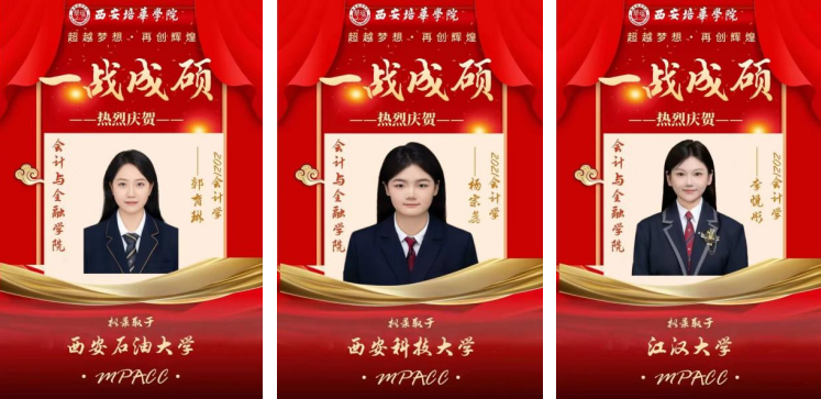 会计学专业实施“精英班”定制化培养,根据学生学业和职业规划,开设考研等相关辅导课程,提高考研成功率,目前已有郭育琳、杨宗蕊、李悦彤等学子走入西安交通大学、西北政法大学、闽南师范大学深造,同时,优秀校友张金禹、张莎莎、彭希望等进入财政局、税务局、银行、事务所等单位,晋升财务主管、经理等管理岗位,主持完成重大项目审计。