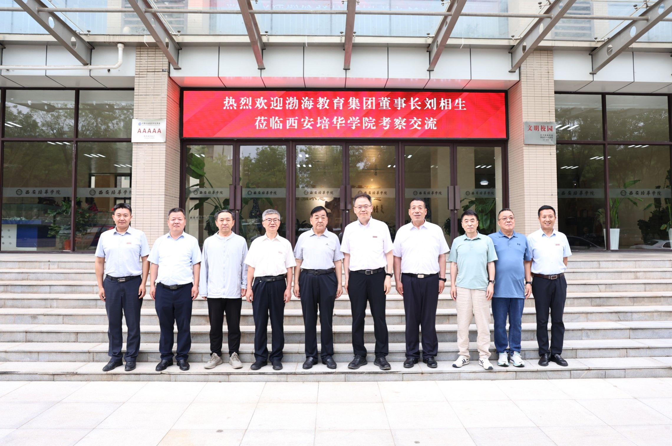 6月19日下午,渤海教育集团董事长刘相生、滨州科技职业学院党委书记韩锋、执行校长孙才顺、副校长吴启军一行莅临西安培华学院考察交流。学校理事长姜波、党委书记刘锋等领导热情接待,双方就教育教学、专业建设、产教融合等进行深入探讨。