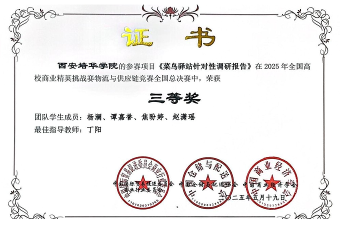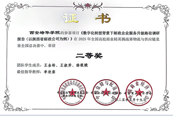 备赛期间,参赛团队充分利用课余时间,深入钻研竞赛规则,开展多轮市场调研,反复优化方案设计。比赛中,学子们以扎实的专业知识、高效的团队协作和稳健的临场发挥,从激烈角逐中脱颖而出:冯居君老师指导的作品《胖东来物流与供应链优化调研报告》获全国一等奖,李欣姿老师指导的作品《数字化转型背景下邮政企业服务升级路径调研报告》获全国二等奖,丁阳老师指导的作品《菜鸟驿站针对性调研报告》获全国三等奖。