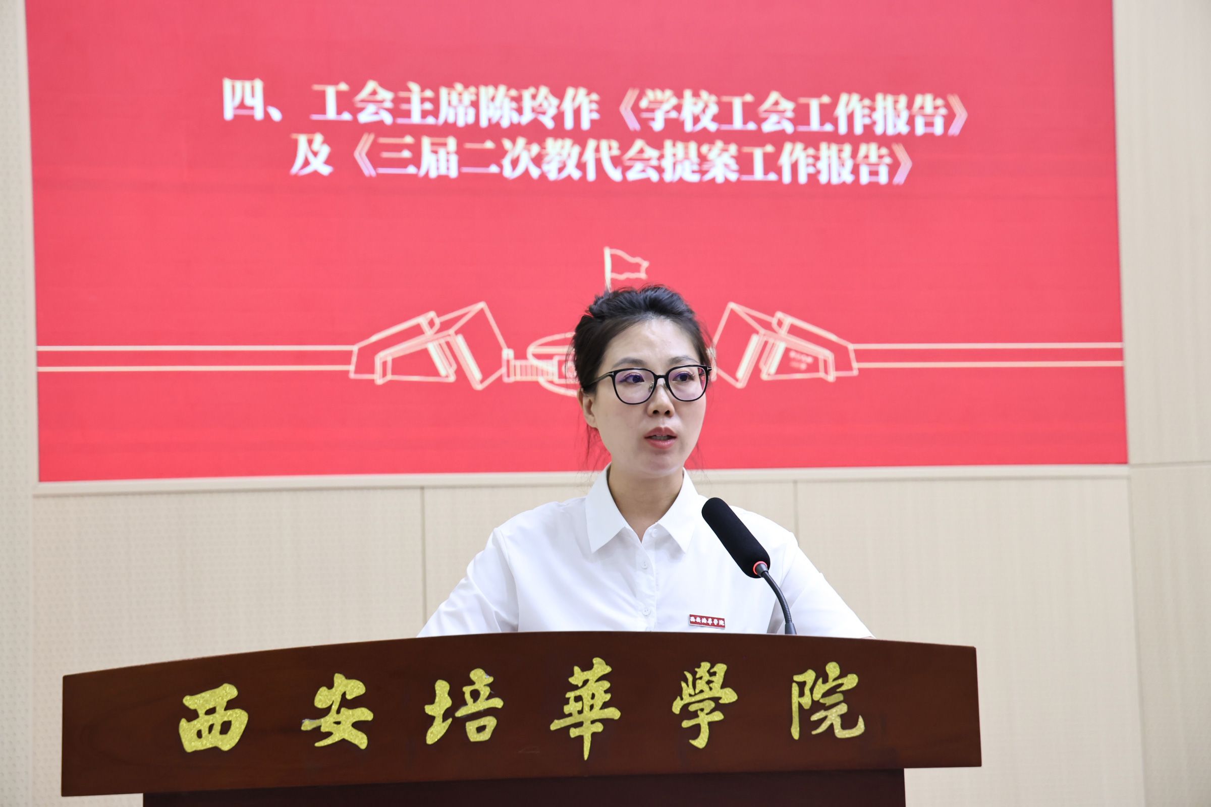 陈玲向大会作了《学校工会工作报告》和《三届二次教代会提案工作报告》。工会报告系统总结了过去一年工会在强化民主管理、赋能职工成长、聚焦职工需求、丰富校园文化、助力乡村振兴等方面所做的扎实工作和取得的优异成绩。《提案工作报告》详细汇报了本次教代会提案的征集与审查情况,体现了学校对教职工民主参与和诉求表达的高度重视。