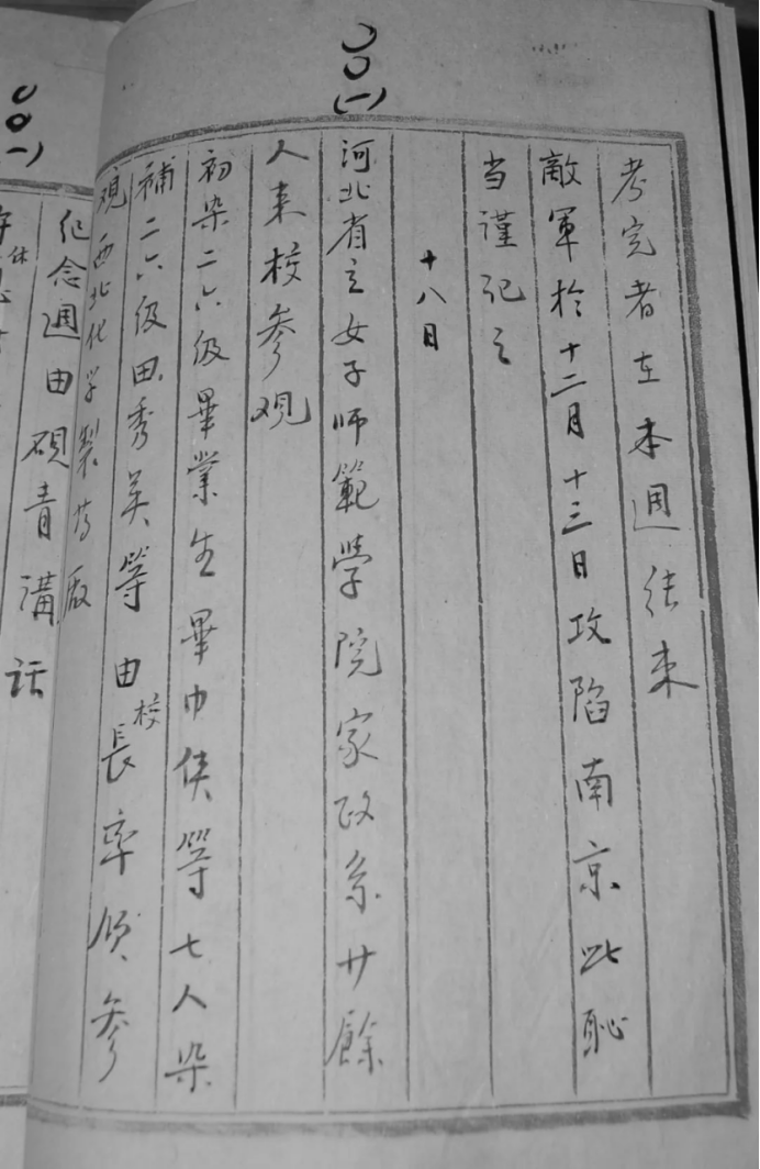 培华女职抗战时期的一页日志记录:“敌军于十二月十三日攻陷南京,此耻当谨记之”