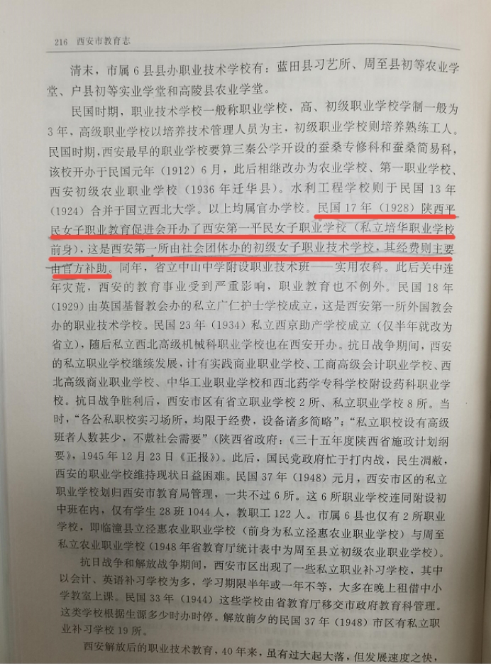 由陕西人民出版社出版的《西安市教育志》中记载了学校的起源和性质