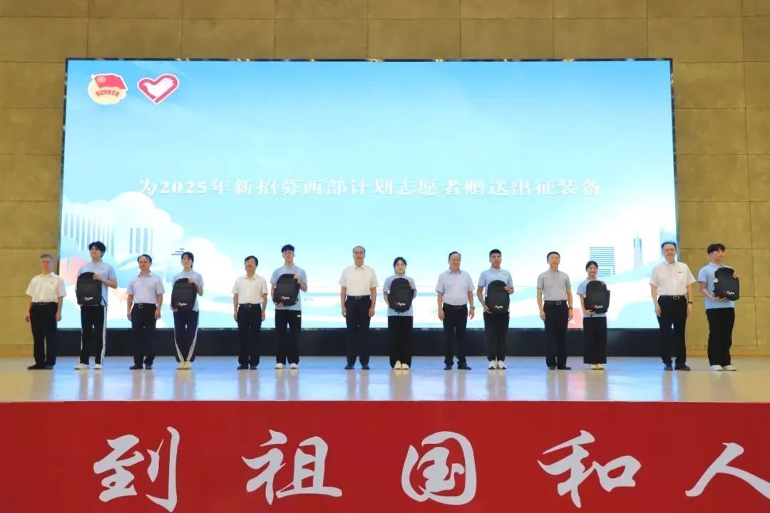 与会领导为2025年新招募西部计划志愿者赠送出征装备