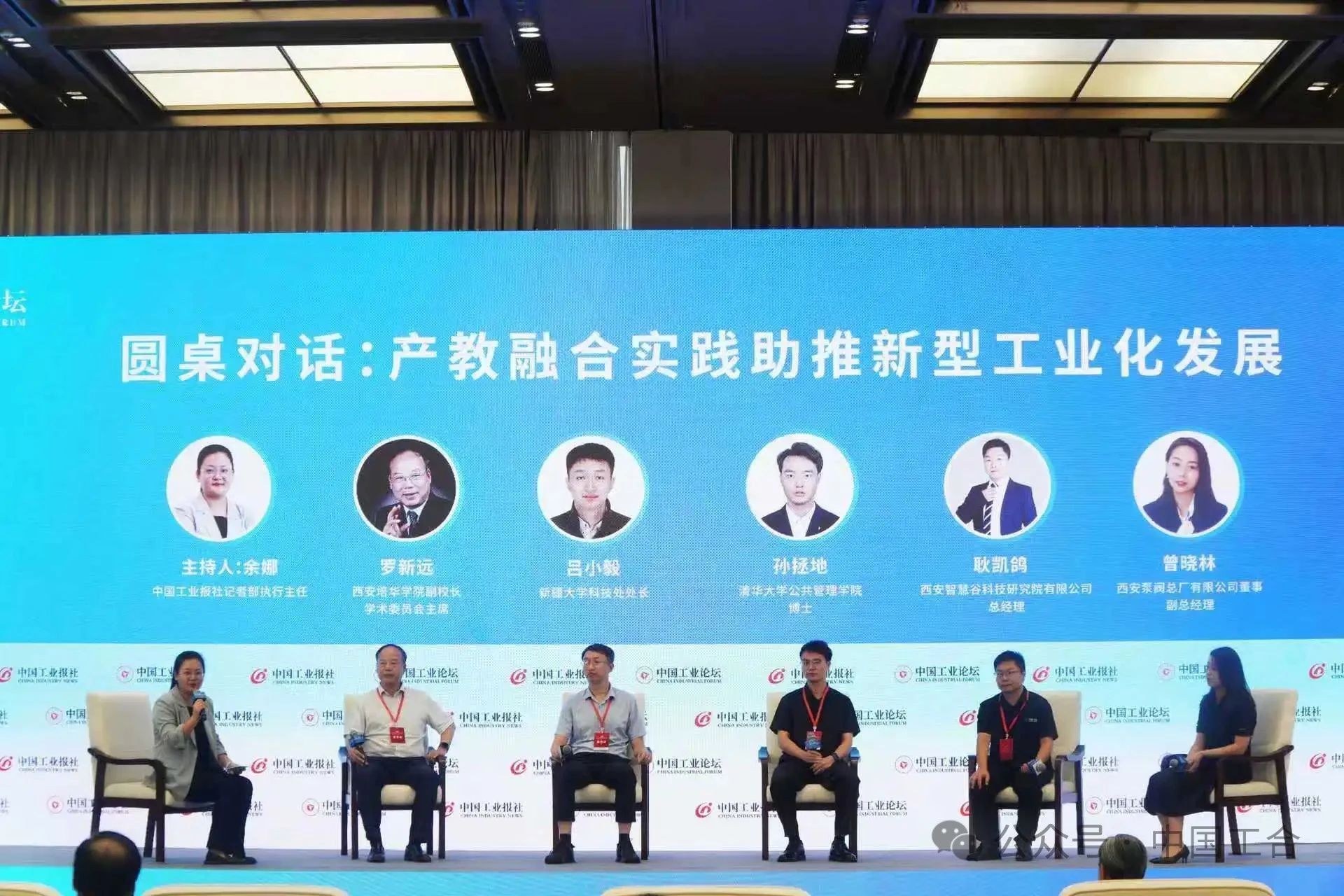 在以“产教融合实践助推新型工业化发展”为主题的圆周对话环节,西安培华学院副校长罗新远,新疆大学科技处处长吕小毅,清华大学公共管理学院博士孙拯地,西安智慧谷科技研究院总经理耿凯鸽,西安泵阀总厂有限公司董事、副总经理曾晓林,围绕产教融合如何更好地服务新型工业化发展这一核心问题,结合各自领域的实践经验,从人才培养模式创新、科研成果转化、校企合作机制构建等方面展开深入交流。