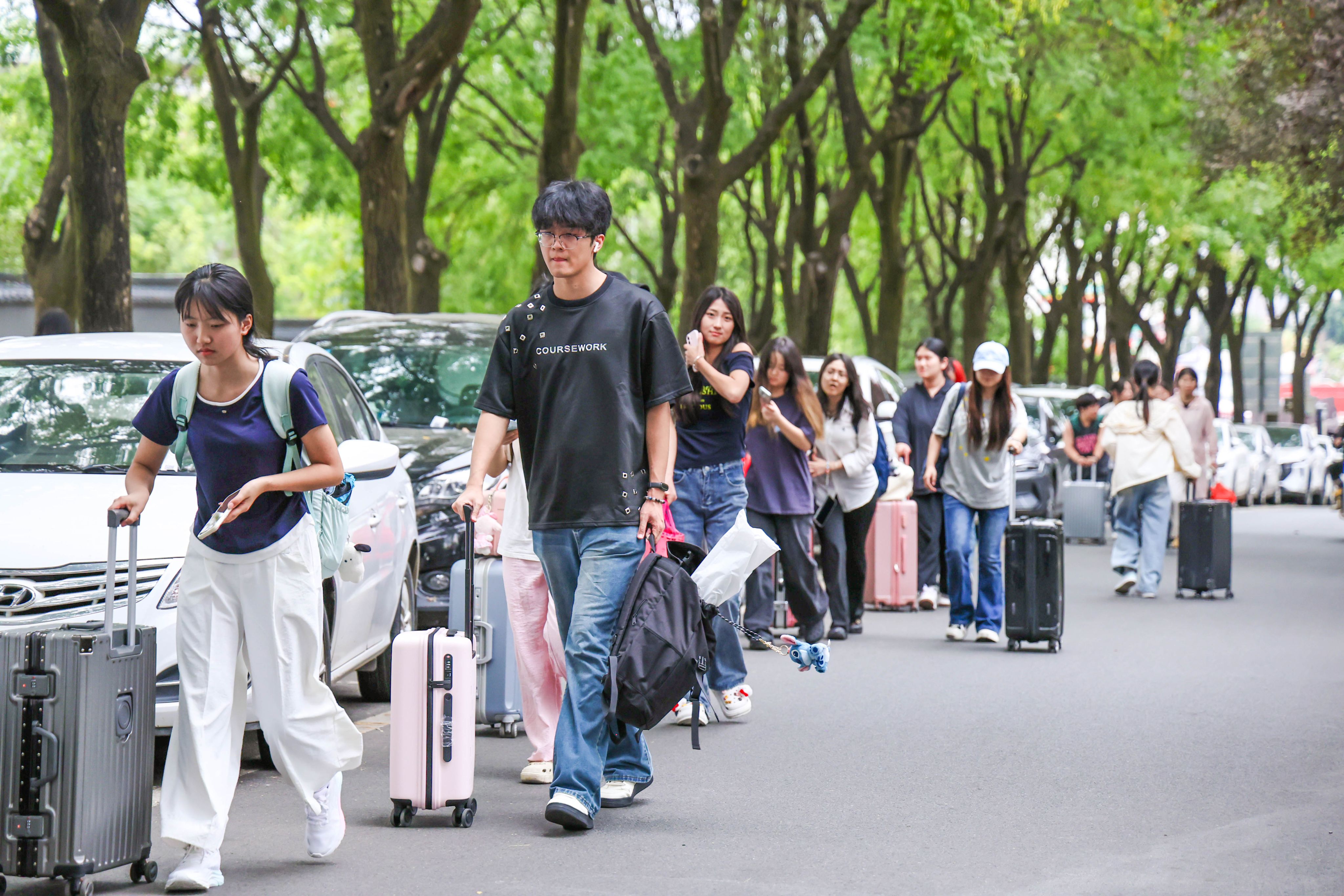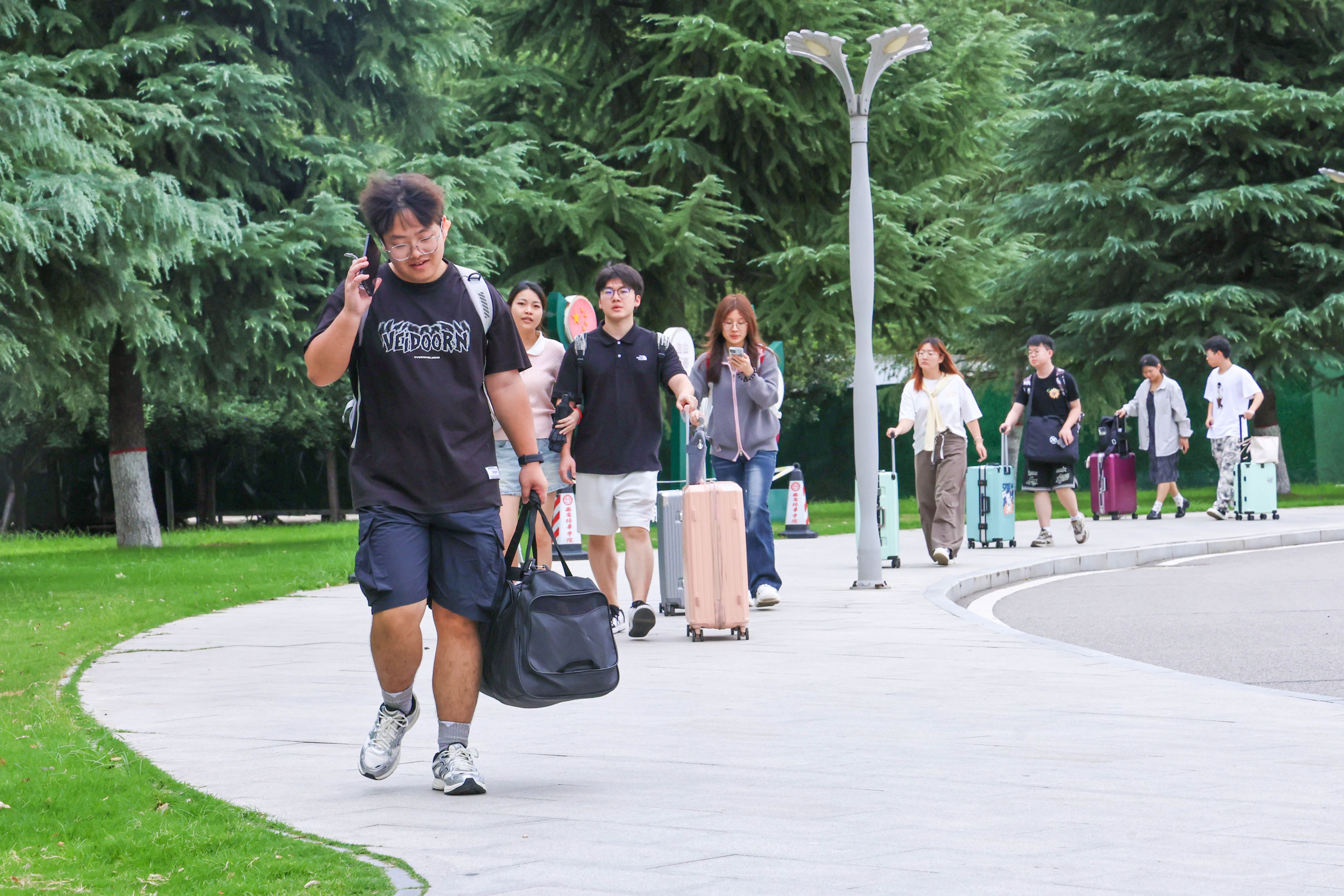 同学们拖着装满“家乡味”的行李箱,在雨幕中与室友拥抱、与食堂阿姨问候、与球友切磋,久别重逢的欢声笑语驱散了秋雨的凉意。