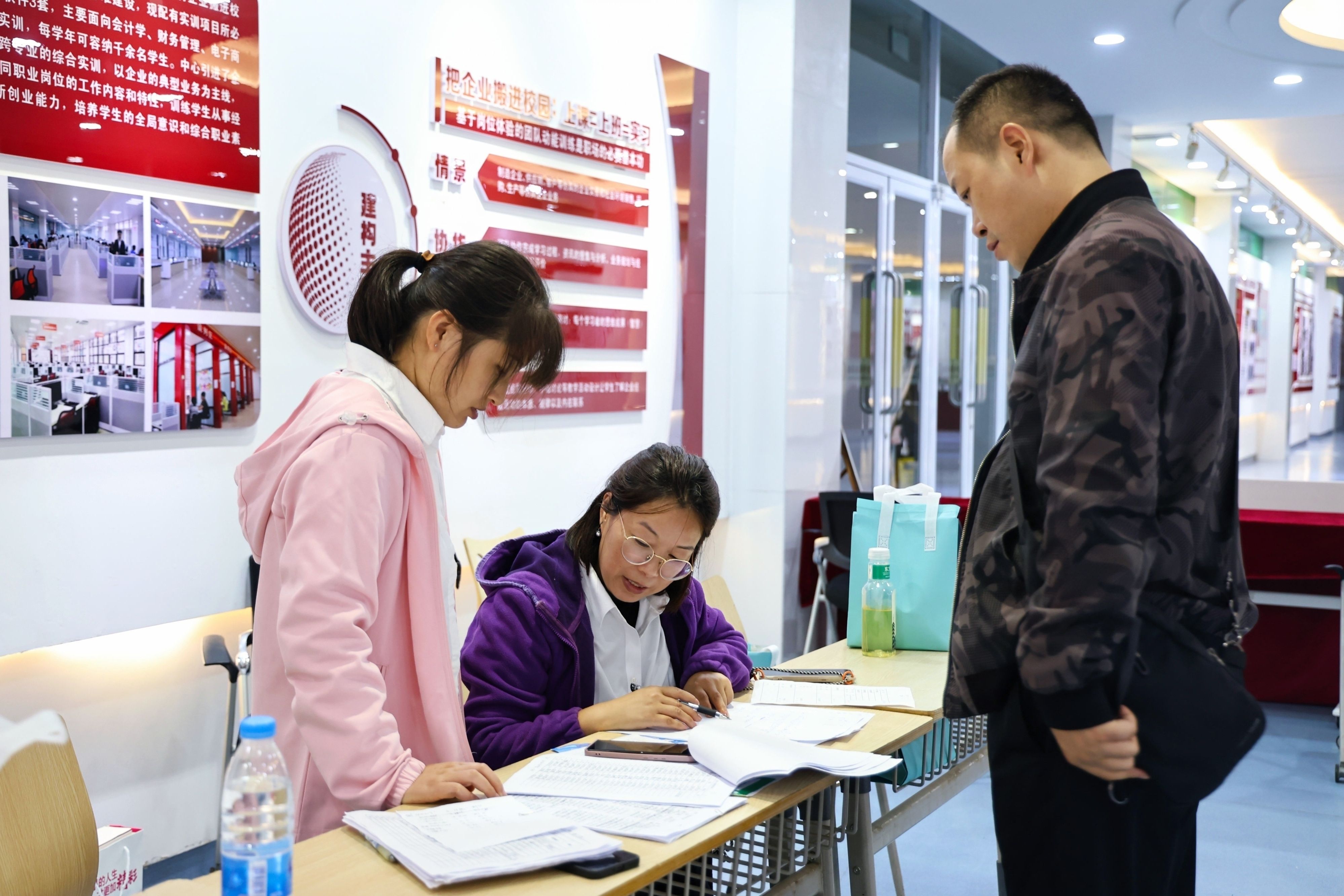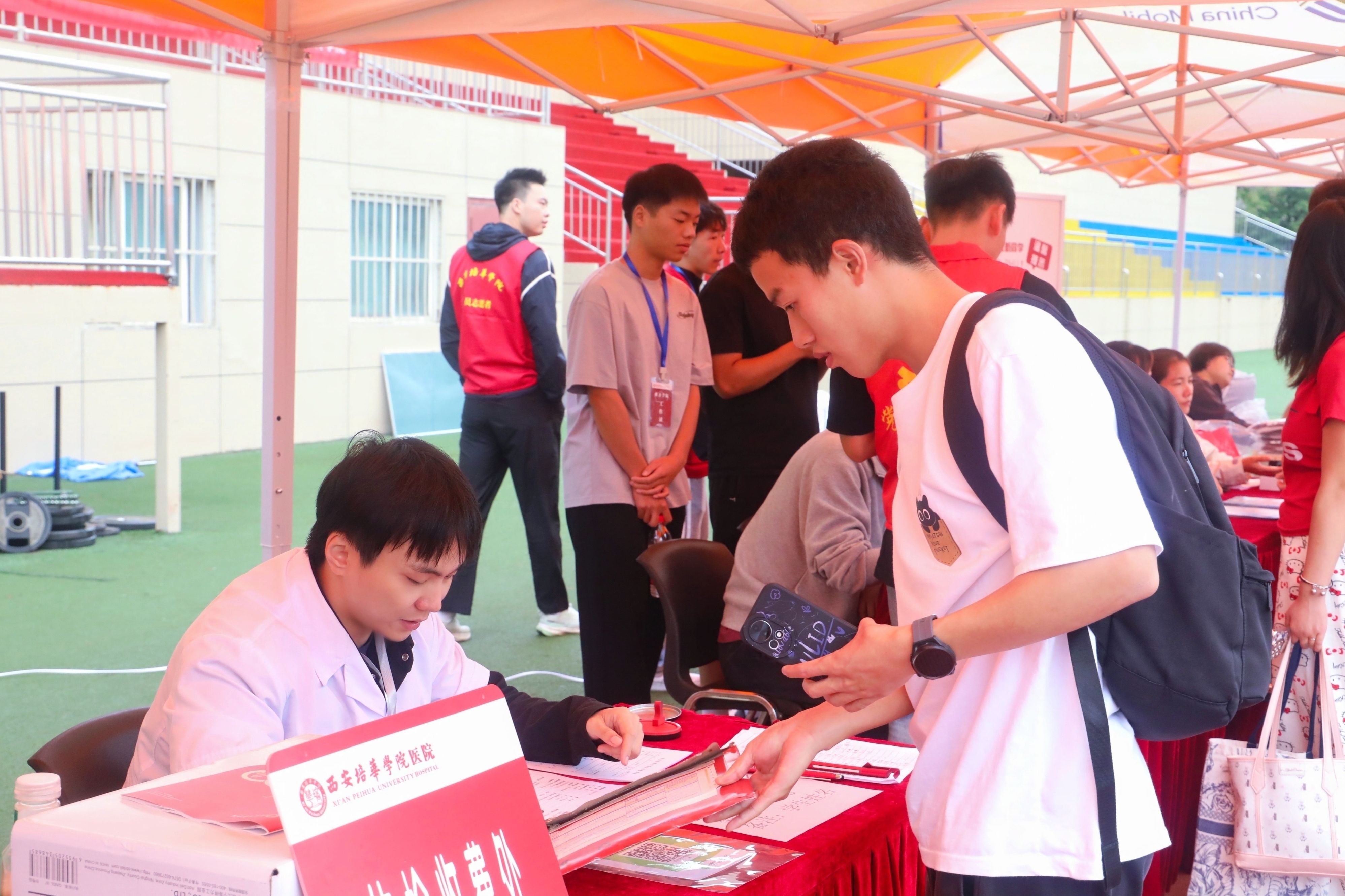 展板前吸引着众多新生和家长驻足。陕西公务员聘用人员人数连续三年蝉联同类院校第一;2024年国家统一法律职业资格考试,法学专业法考通过率34.8%;2025年全国护士资格证考试,护理学专业通过率100%……这些荣誉全方位展示着学校近年来的育人成果和办学实力。