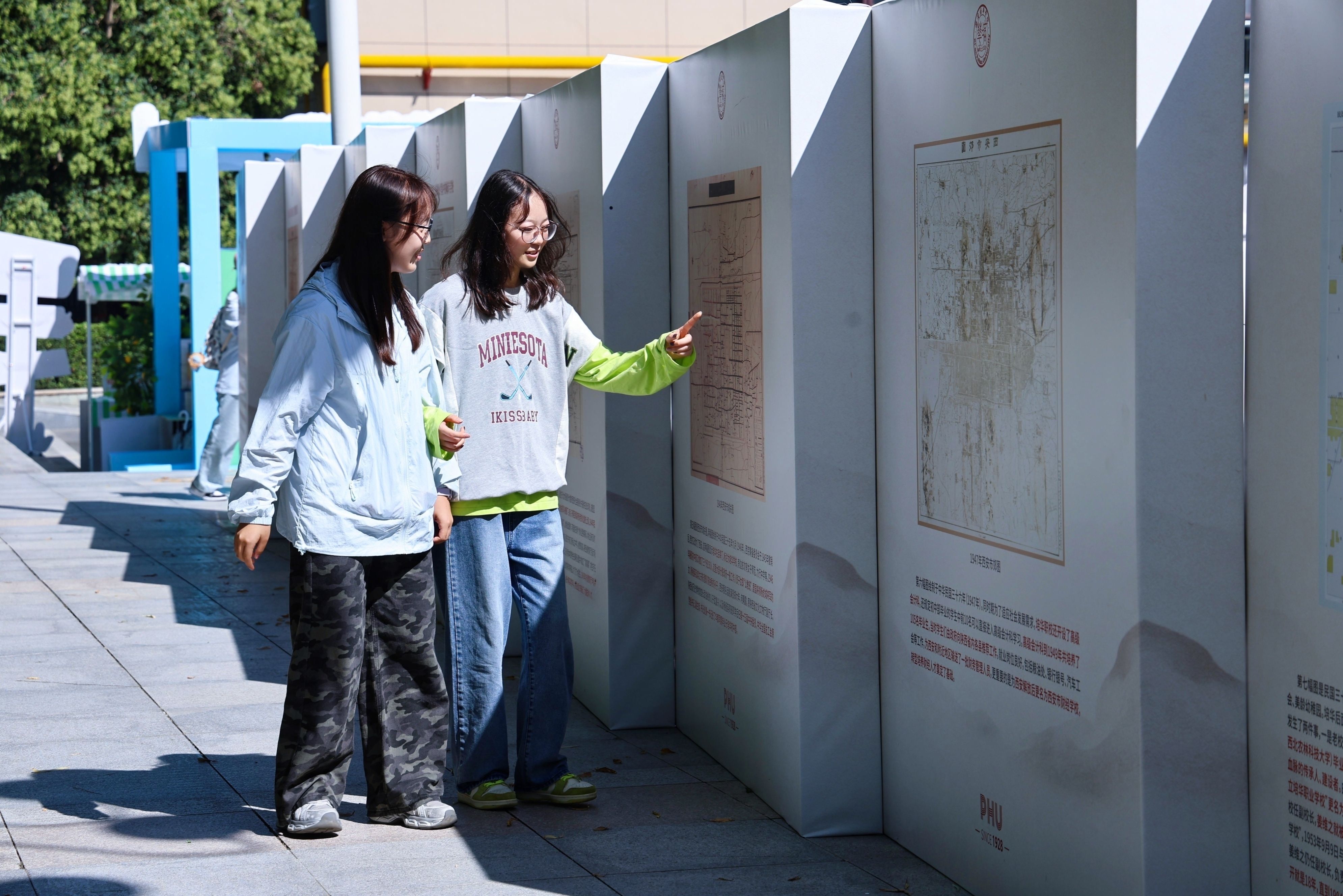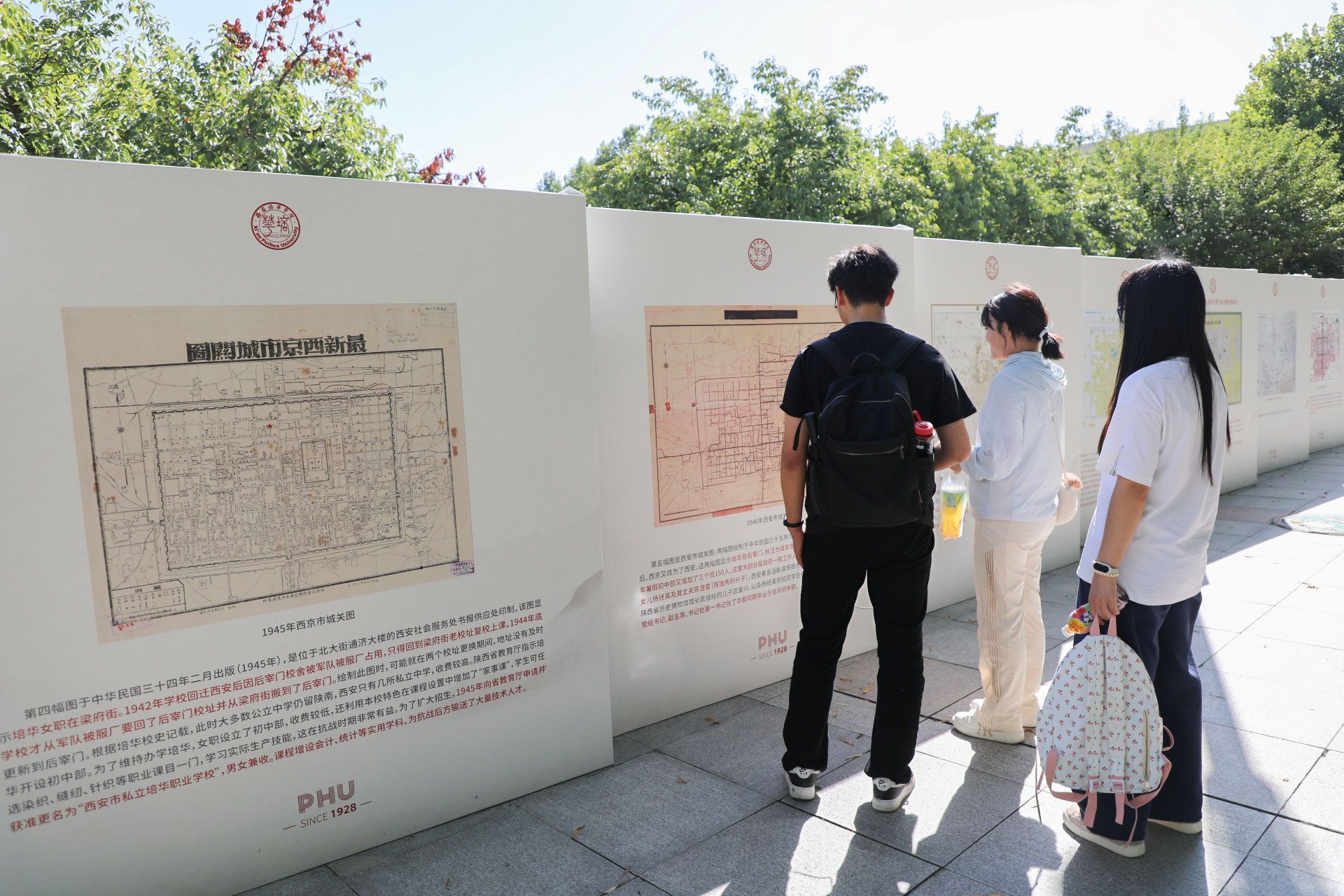 《百年守望》的展板上,陈列着珍贵的历史照片,讲述着培华与西安这座城市的故事。许多学生和家长在此驻足良久,一位父亲指着展板对身边的孩子说:“看看这所学校的厚重历史,你在这里读书,我们很放心。”