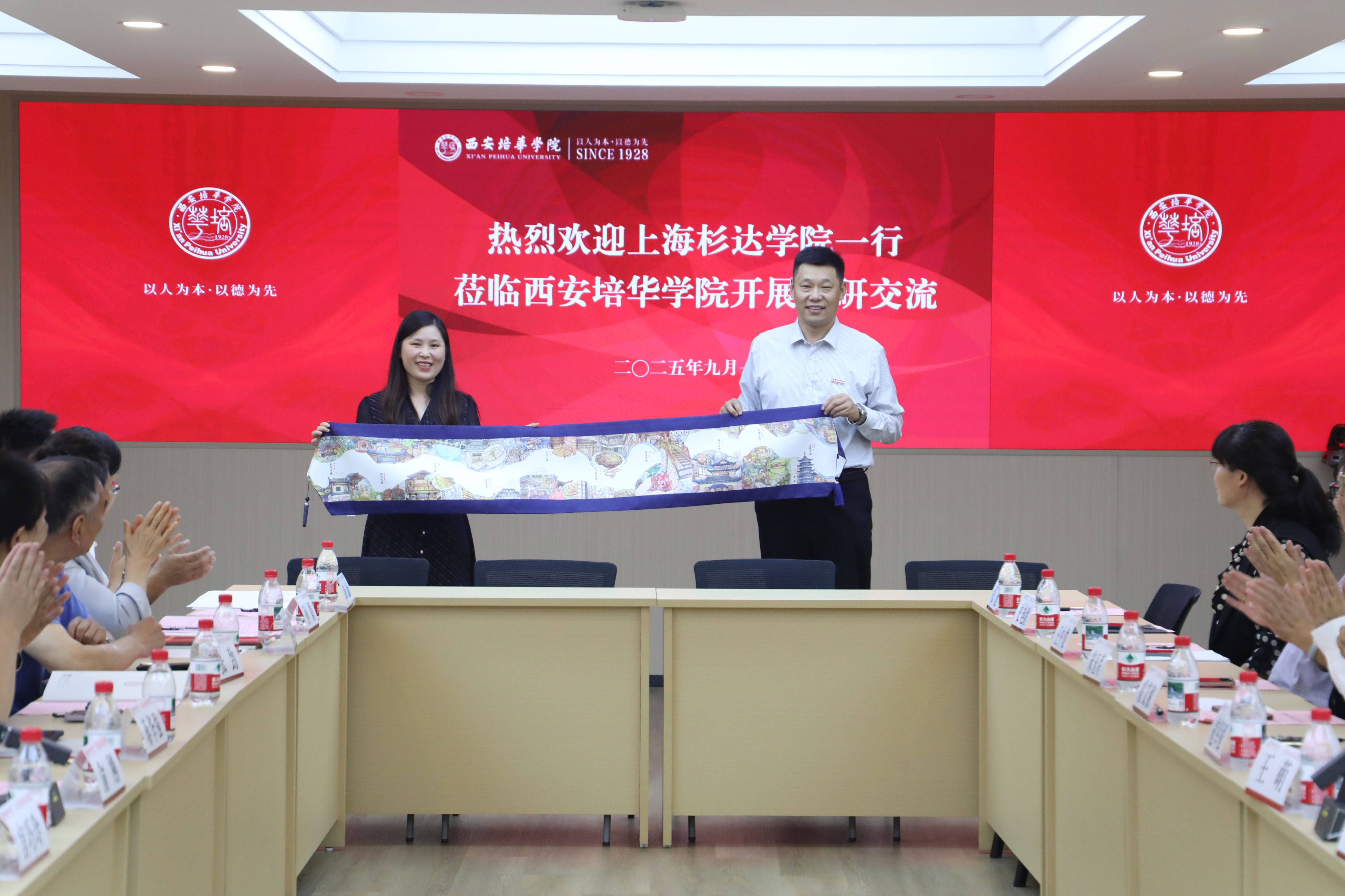 2025年9月1日,上海杉达学院党委办公室主任、党委宣传部部长官巧玲,校纪委副书记、马克思主义学院党总支书记俞刚率团访问西安培华学院。学校党委副书记、宣传部部长蔡亮出席并致辞,马克思主义学院院长闫团结主持交流会。