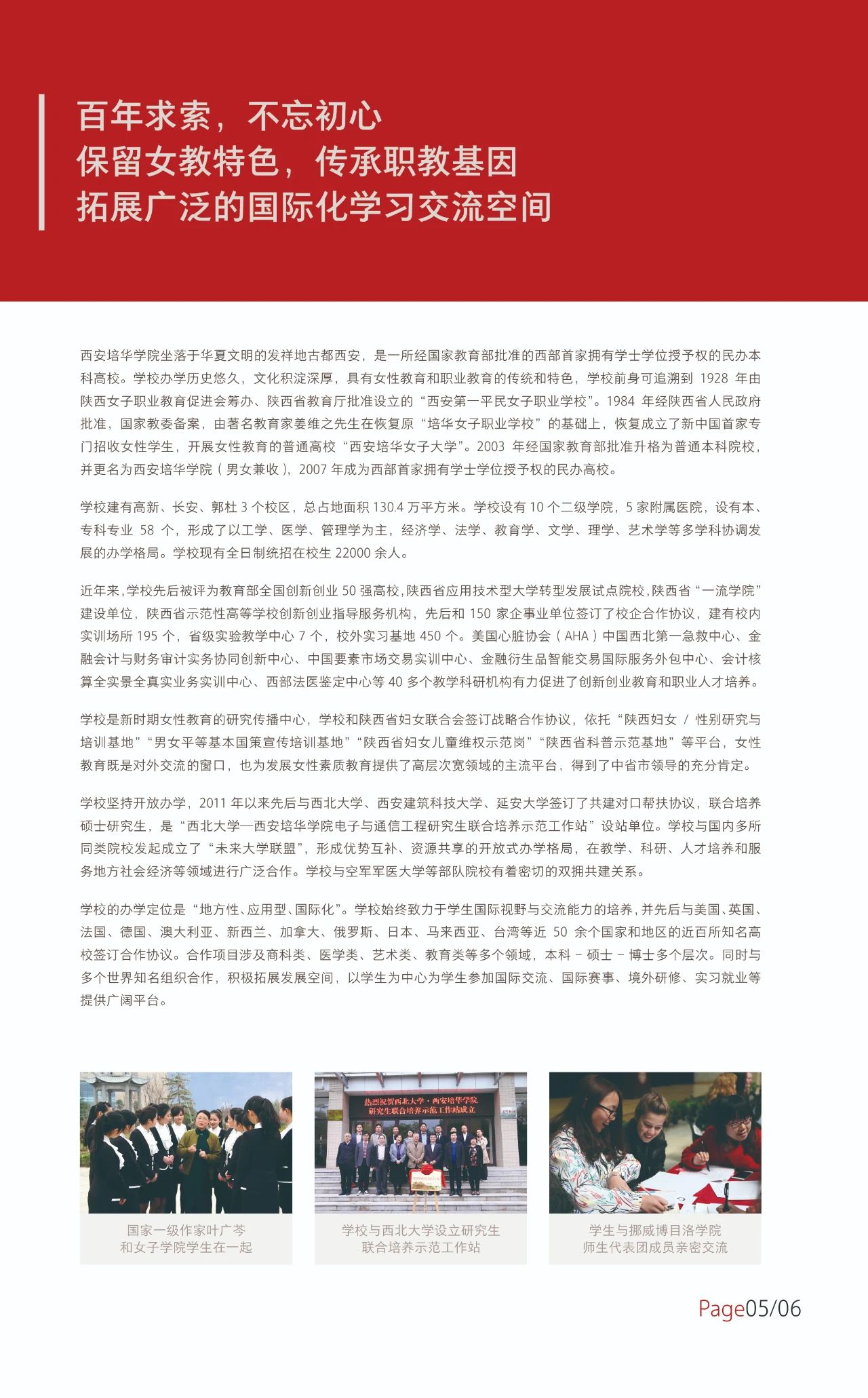 西安培华学院坐落于华夏文明的发祥地古都西安,是一所经国家教育部批准的西部首家拥有学士学位授予权的民办本科高校。学校办学历史悠久,文化积淀深厚,具有女性教育和职业教育的传统和特色,学校前身可追溯到1928年由陕西女子职业教育促进会筹办、陕西省教育厅批准设立的“西安第一平民女子职业学校”。1984年经陕西省人民政府批准,国家教委备案,由著名教育家姜维之先生在恢复原“培华女子职业学校”的基础上,恢复成立了新中国首家专门招收女性学生,开展女性教育的普通高校“西安培华女子大学”。