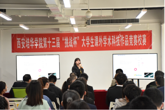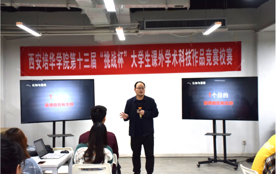 3月30日,西安培华学院第十三届“挑战杯”大学生课外学术科技作品竞赛校赛路演答辩在创客中心二楼培训厅举行,本次路演答辩邀请“挑战杯”省赛评委张伟老师及两位校内老师作为评审嘉宾。各项目团队分别从项目的背景、创新性、实用性等角度以PPT的形式进行了全方位介绍和展示。评委对每个项目的优缺点进行点评,让学生了解了自己项目存在问题和改进方法。