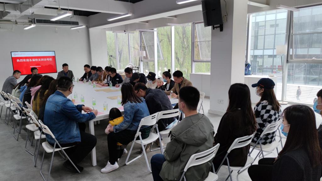 4月11日下午,西安培华学院长安校区春光明媚,鸟语花香,以校报记者团原校园记者为主的近30多位校友与母校老师们在创客中心二楼举行了座谈会,校长办公室主任李健,党委宣传部部长、校友服务与发展中心主任柳雨及全媒体采编工作室负责老师、在校学生记者团成员参加了座谈会。