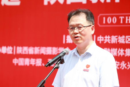 中共新城区委常委、宣传部部长杨丽萍致辞中对在场的各界新闻摄影人士及嘉宾表示热烈的欢迎。她讲到,中国共产党历经100年风雨征程,中国共产党带领广大劳动人民奋勇前进、艰苦奋斗,深刻体现了中国共产党人的使命和担当。她强调,本次庆祝建党100周年主题展演活动记录了三秦大地百年来,人民群众听党话、跟党走,走向幸福生活的历史印记,也是为建党百年献上的最好礼物。