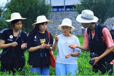 西安培华学院学生在向阳茶山与当地居民探讨茶叶生长