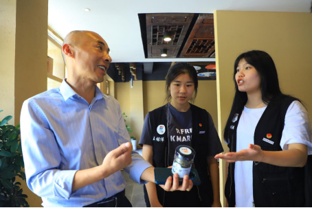 ——做调研访谈,体会电商直播带货。以茶待客是传承几千年的礼仪,“青年观察家”们结合专业基础及特长,走访紫阳县多个茶叶交易市场、电商服务中心、文化广场和附近村镇,与普通市民和茶商进行了深入的交流和调研,了解当地茶产营销、茶文化展示、茶生活体验等情况,发放问卷2000余份,访谈百余人,通过调研访谈,得知,紫阳特色产业发展迅速,人民生活水平逐渐提高,幸福感逐渐增强。“青年观察家”们在工作人员的指导下体验了直播带货,以大学生视角对紫阳特色富硒茶、紫阳特色农产品进行线上宣传推广,完成了实践调研任务,得到了当地政府、市民、茶商的一致好评。