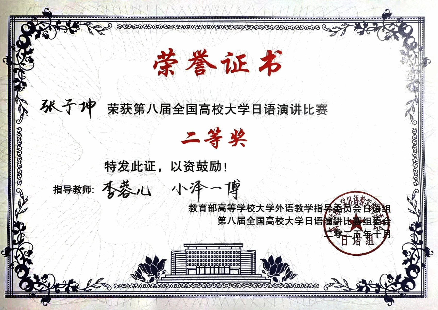这份荣誉离不开国际教育学院日语专业指导教师就命题解析与表达技巧训练的系统指导,获奖不仅展现了张子坤同学的个人实力,也体现了学校日语教学水平的不断提升和人才培养质量的持续增强。