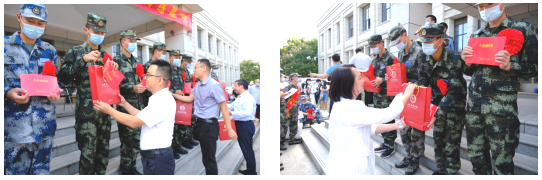 各学院领导为入伍新兵送上入伍纪念品