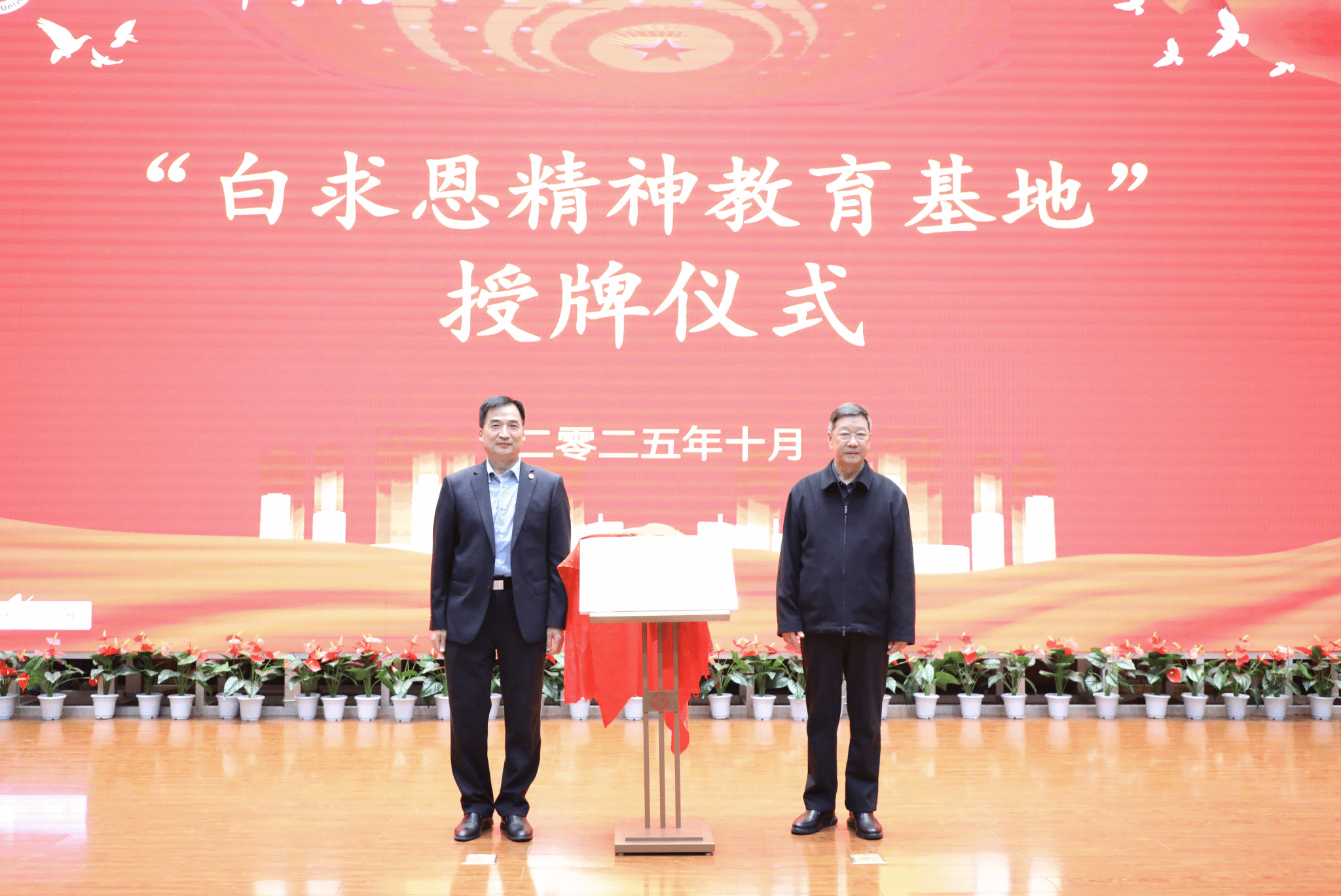 领导嘉宾共同为“白求恩雕像”举行庄严的揭幕仪式