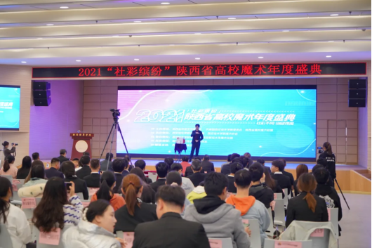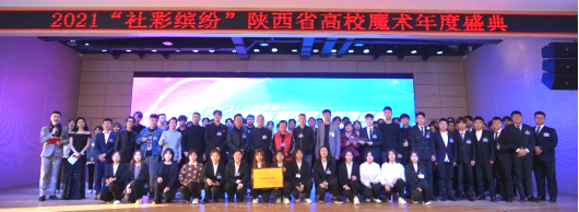 在2021“社彩缤纷”陕西省高校魔术年度盛典会上,四家社团举行了逢年生日仪式及盛典演出。