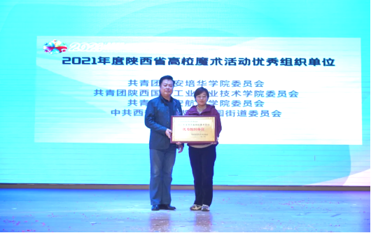 西安培华学院魔术社团翁铭淳、谭咏同学获评2021年度陕西省高校魔术联盟优秀干部。西安培华学院魔术社团创作的主题晚会《“铸锦逢魔”小剧场魔术夜》获评2021年度陕西省高校魔术联盟优秀高校魔术作品(社团集体作品类)。西安培华学院魔术社团获评网络人气社团。西安培华学院魔术社团获评2021年度陕西省优秀高校魔术社团。共青团西安培华学院委员会获评2021年度陕西省高校魔术活动优秀组织单位。