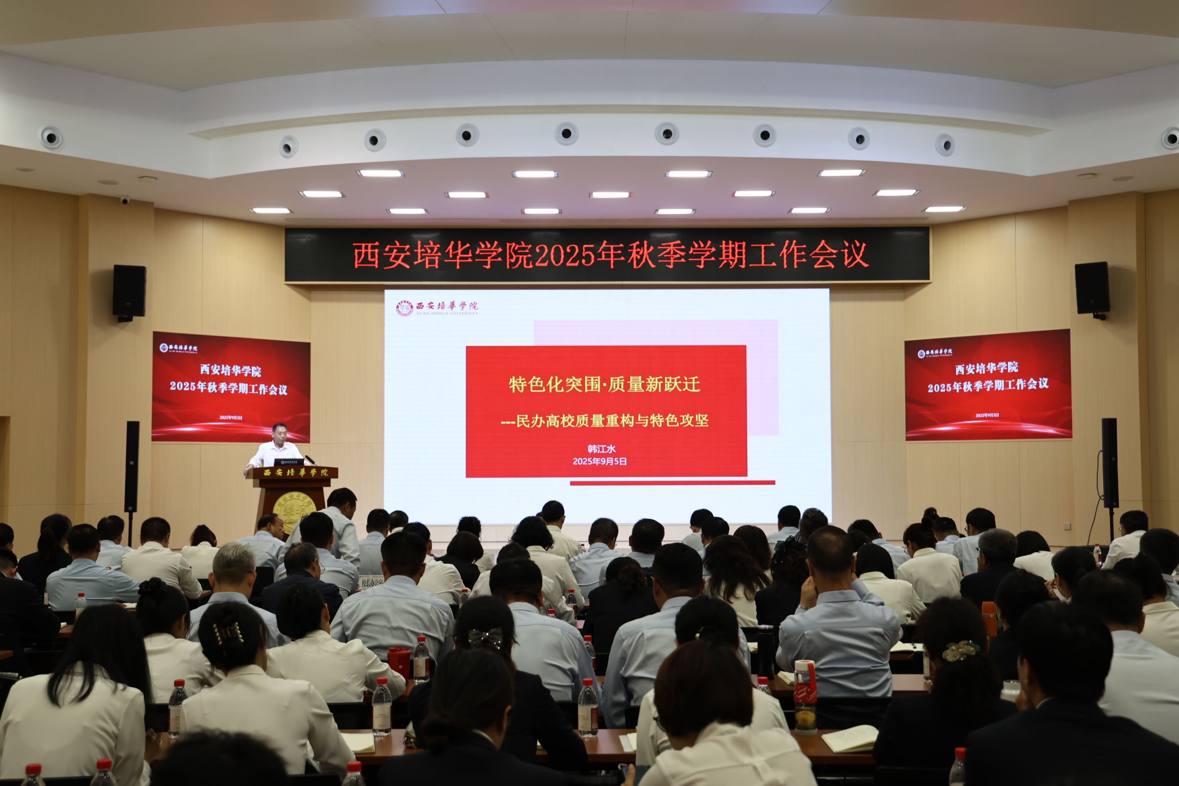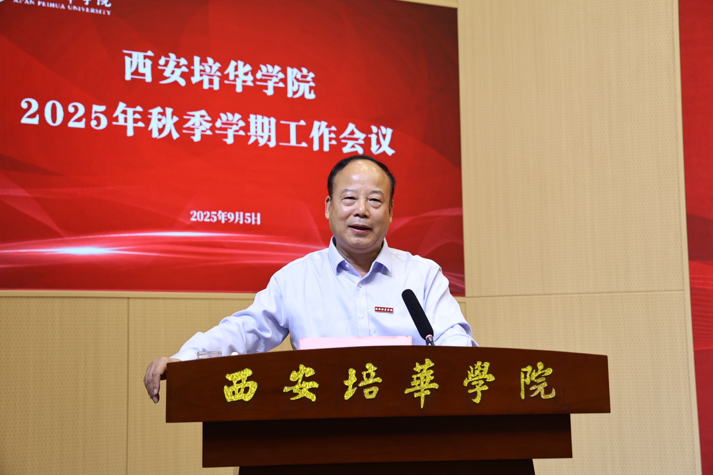 学校理事长姜波在会上讲话。他深入分析了2025年全国高校招生录取呈现的新趋势与新变化,深刻阐释了民办高等教育发展进入了“内涵式、特色化、多元化”发展的关键时段。面对高等教育变革的新趋势和新要求、新环境,学校必须锚定方向、精准发力,奋力建设高水平民办大学。他从六个方面进行了强调:一是深入贯彻落实国务院《人工智能+行动意见》、中共中央教育领导小组《高等教育学科专业设置调整优化行动方案》,必须面向国家重大战略需求和区域经济发展需要,培养适应新时代要求的多样化人才,要围绕制造强国、数字中国等战略,设置和发展相关专业。二是要围绕创新型应用人才培养,全面深化教育供给侧和需求侧改革,精准对接教学改革与产业发展需求,优化学科专业布局,推进新工科、新文科、新医科与交叉学科建设,撬动产学研一体化改革支点,重构课程、培养、评价与激励体系。三是要坚持“以学生为中心”,关注学生个性化成长与全面发展,深化“订单式”人才培养,打造培华版“双师”制度,构建“三全育人”体系,提升学生的实践能力、创新素养与终身学习能力,努力实现“校区即园区、学位即工位、毕业即就业”,不断提升学生就业创业质量。四是全力冲刺申硕攻坚,加强跨部门、跨单位协同联动,整合校内外优质资源,全力以赴,形成申硕攻坚强大合力;各学位点要继续凝练学科专业方向,突出特色与优势,严格对标申硕核心指标要求,逐步完善优化关键数据,集中优势资源实现重点突破。五是持续推进人才队伍建设,确保申硕关键指标达标;加快重点项目建设,做好“十五五”规划编制,确保学校安全稳定。六是全体干部教师要进一步增强危机意识、市场意识、品牌意识、质量意识、发展意识和实干意识,以本次会议为新起点,踔厉奋发、真抓实干,做学校高质量发展的创业者、学习者、实践者和推动者。